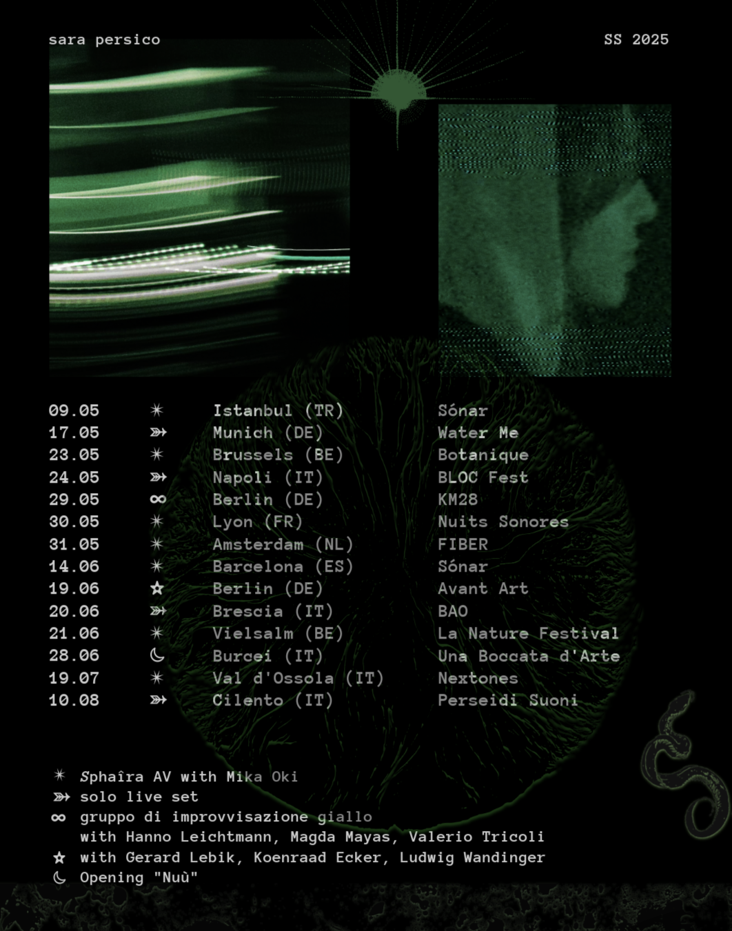 Sara Persico is a sound artist, composer and performer from Napoli (south of Italy) whose work centres on voice, analog electronics and field recordings.